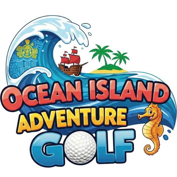 At Ocean Island Adventure Golf, you will embark on an unforgettable journey through vibrant Pacific Ocean scenes. Encounter playful dolphins and a majestic octopus as you navigate our immersive crazy golf course.